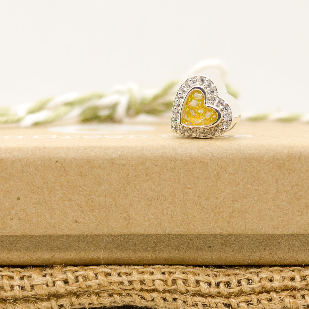 This heart shaped CZ bead is a beautiful way of keeping some ashes of your loved one close by. The heart shaped bezel is surrounded by beautiful Cubic Zirconia sparkles. The bead is approximately 10mm x 10mm with a depth of 8mm. The heart shaped bezel in the middle is 6x5mm with a depth of 1mm. If you need a bracelet to accompany it you can purchase my snake chain bracelet in my Ready Made Gifts section. You can design your bead exactly how you want it, so please take a look at the personalisation details below.