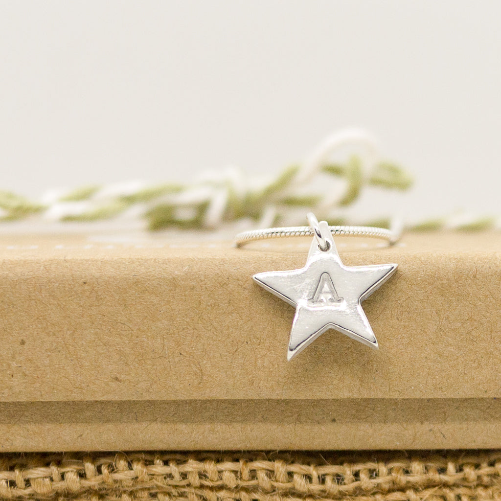 This beautiful fine silver star is 15mm in length and 15mm in diameter. It can be stamped with the initial of your choice