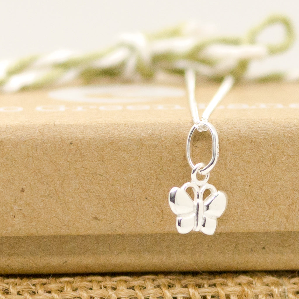 This cute little butterfly necklace features an adorable little butterfly charm, perfect for any animal lover. Both the chain and the pendant are sterling silver.