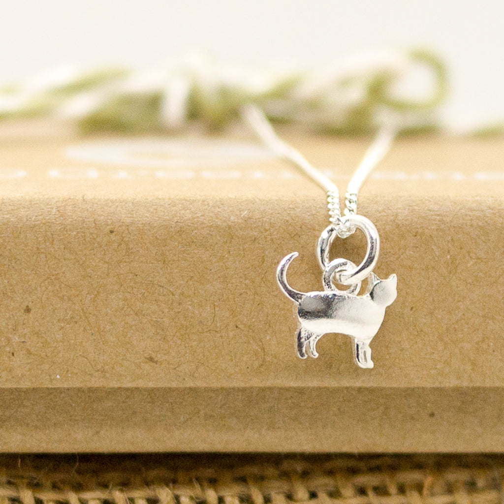This cute little cat necklace is a lovely gift for someone, or perfect if you're a cat owner yourself. Both the chain and the pendant are sterling silver.